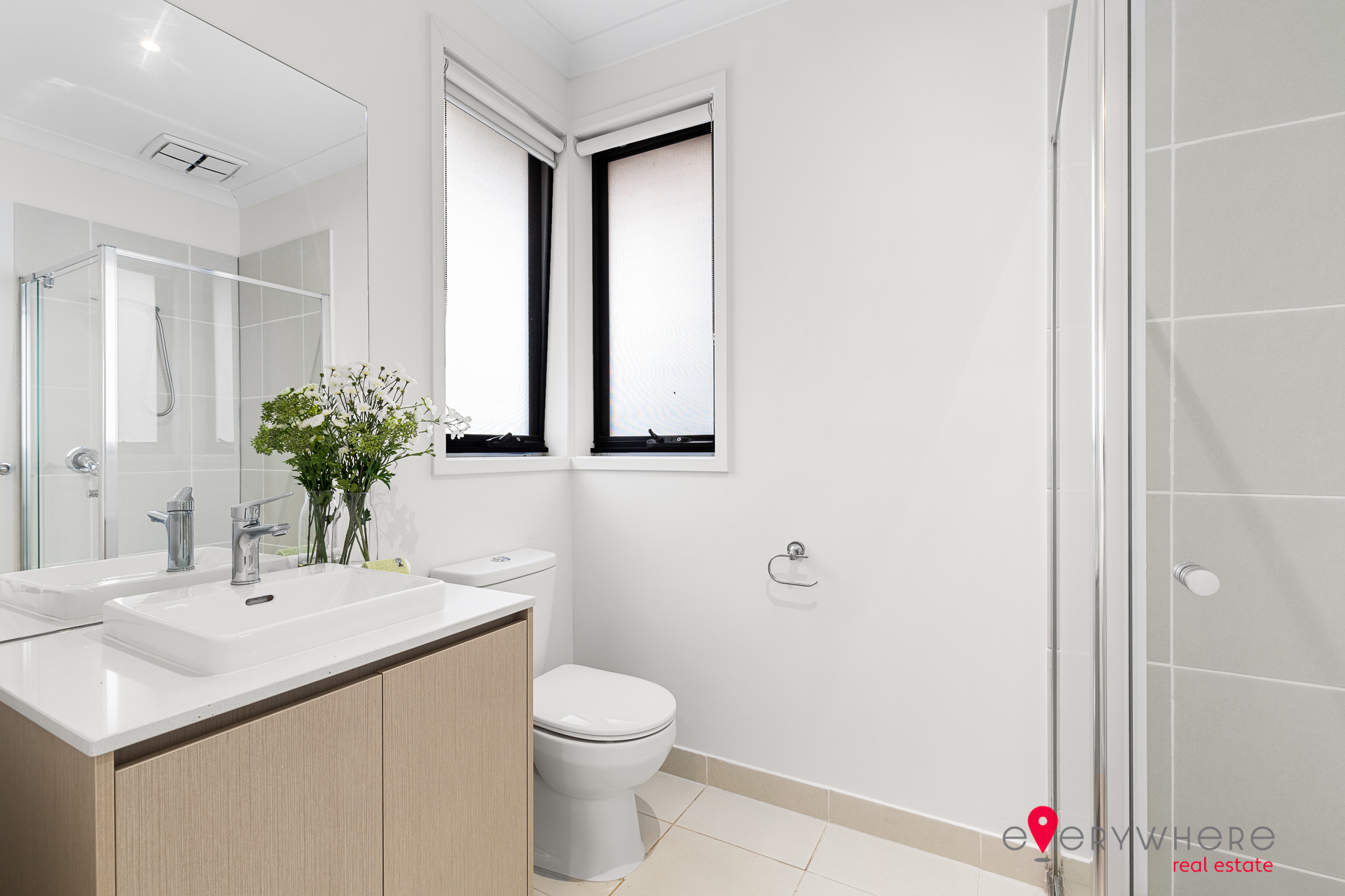 Tiled wet areas with stone benchtops to bathroom and ensuite vanities