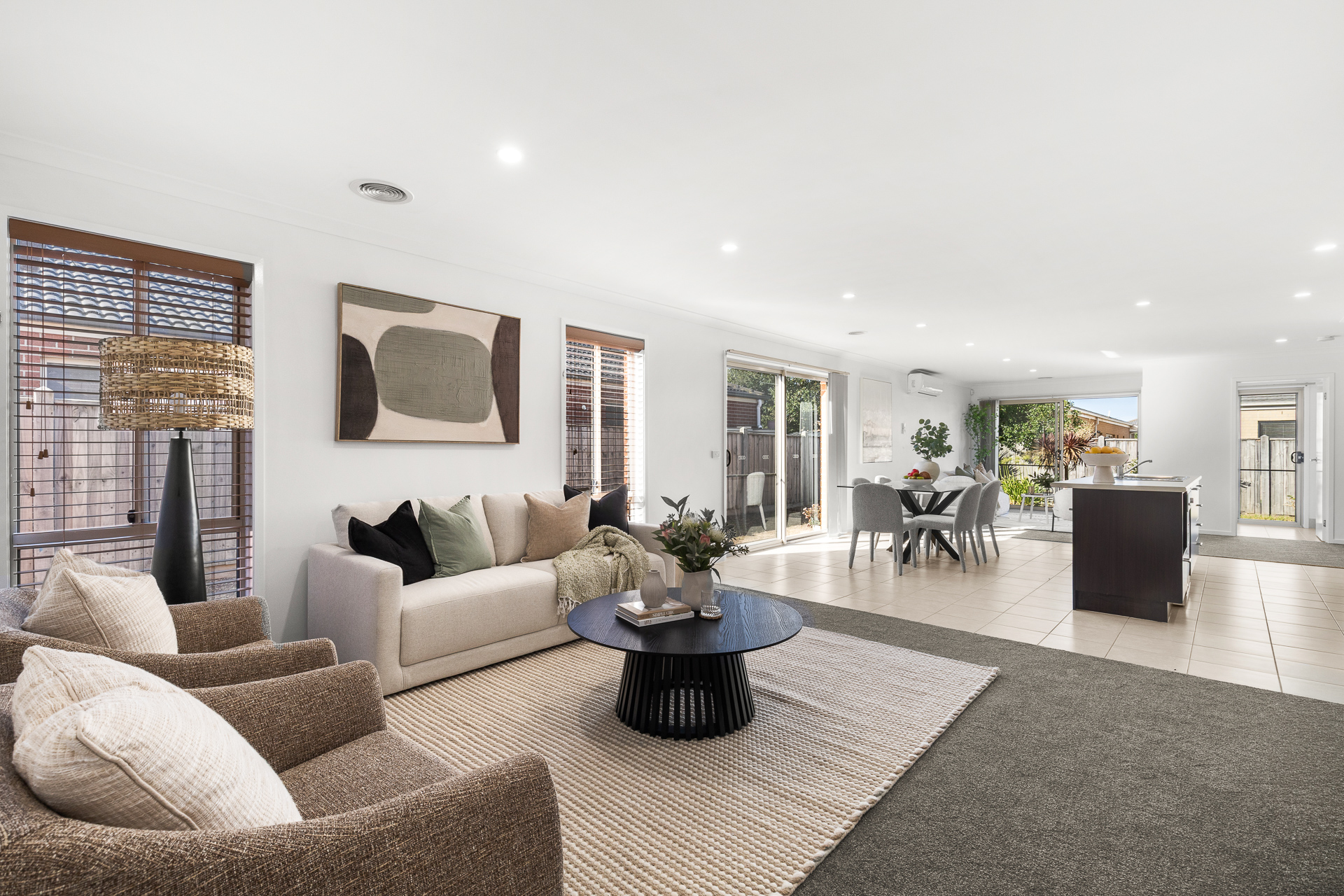 At the heart of the home is a spacious open-plan living, dining and family zone, designed to bring everyone together while still allowing room to spread out and relax.