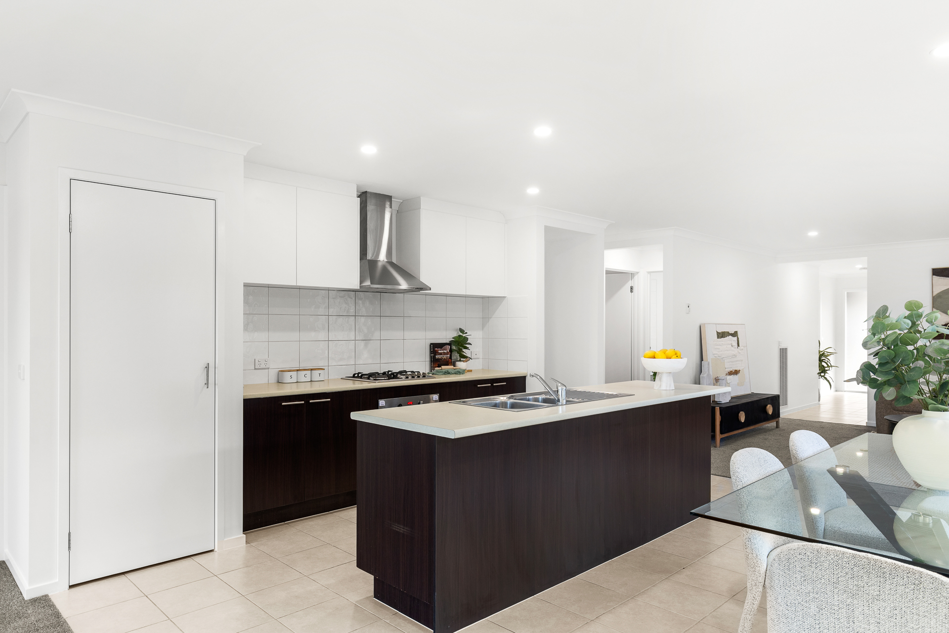 The kitchen is perfectly positioned to overlook the living areas, making it ideal for both everyday living and entertaining.
